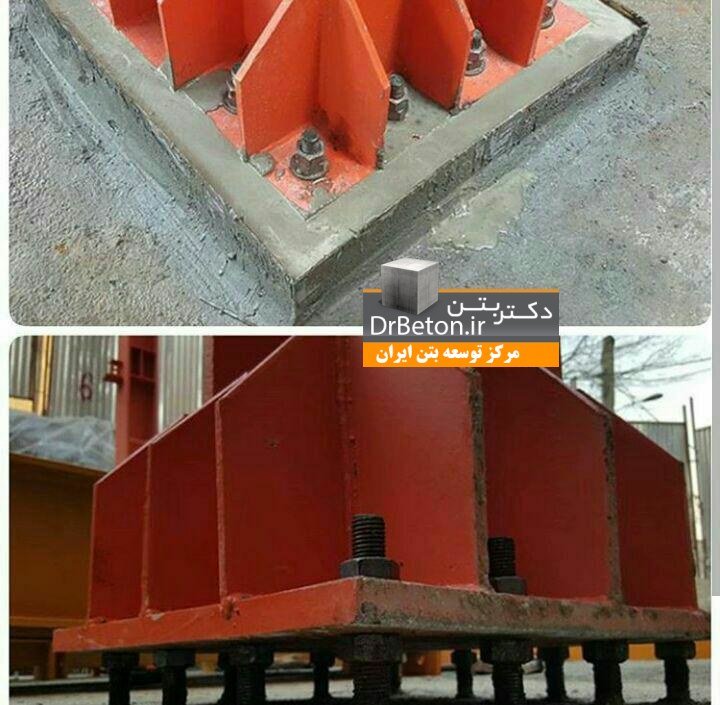 گروت ها به عنوان یک ماده مستقل و نیز به عنوان یک ماده ی تعمیر بتن کارآمد هستند. از گروت به دلیل مقاومت بالا تر از بتن معمول و همچنین خواصی نظیر توانایی کنترل بارهای دینامیکی ، قابلیت انبساط در نوع پایه سیمانی ، به عنوان پر کننده زیر صفحات و بیس پلیت های ستونهای فلزی، پمپ ها و جک ها و دستگاههای پرس و فن ها و روترهای سانتریفیوژ استفاده می شود انواع گروت را می توان به دو نوع گروت اپوکسی و گروت پایه سیمانی و … معرفی کرد.گروتی مناسب است که دارای خاصیت غیر انقباضی(non-shrink ) و مقاومت بسیار بالا می باشد. گروت فضای خالی زیر بیس پلیت و فونداسیون را تراز می کند. بنابراین قبل از نصب اسکلت، تراز بودن بیس پلیت باید توسط دوربین و نقشه بردار تایید گردد.همچنین بهتر است که قالب از دو طرف روبروی هم فاصله بیشتری با لبه صفحه فلزی داشته باشد تا در هنگام گروت ریزی هوا از سمت دیگر خارج شود . ضربه های کوچک به قالب و پلیت برای خارج شدن هوا بی تاثیر نیست. در صفحاتی با ابعاد بزرگ باید از زنجیر کشی استفاده کرد ، یعنی یک زنجیر کوچک از فضای گروت ریزی (مثلا در طول بیس پلیت) وارد شده و از طرف دیگر خارج می شود و به وسیله دو نفر به حالت طناب کشی به طرفین کشیده شده و نقش ویبره را بازی می کند.